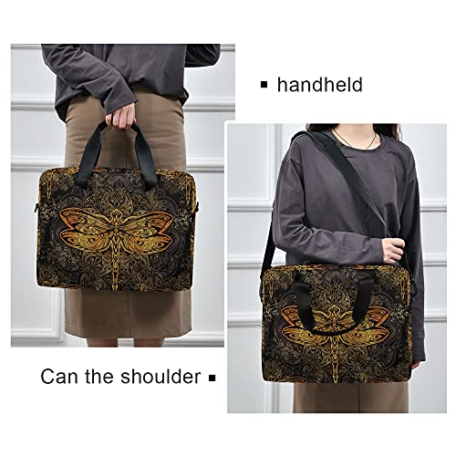 HOT ! ALAZA Gold Dragonfly Mandala Laptop Case Bag Sleeve Portable Crossbody Messenger Briefcase w/Strap Handle, 13 14 15.6 inch