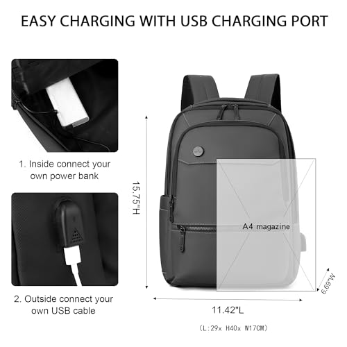 Laptop Backpack for Men Business Work Backpack with USB Charging Port Water-resistant Computer Bag for Mens Fit 15.6 Inch(Grey) 6