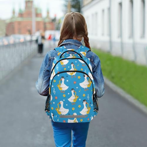 Geese Playing Saxophone Large School Backpacks with Chest Strap for Boys Girls Students,Lightweight Bookbags 17 Inch, Portable Casual Daypack Bags 6