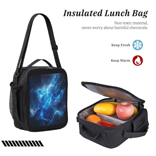 3PCS Backpack Adjustable Lightweight Back Pack With Insulation Lunch Box & Pencil Bag Laptop Backpack for Travel Work Camping Gifts,Women Men Unisex Galaxy Blue Space Daypack 4