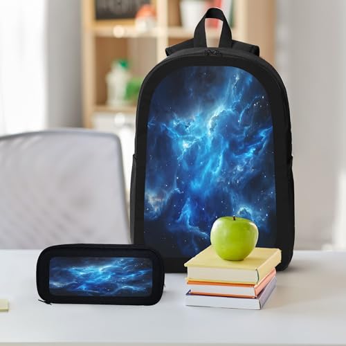 3PCS Backpack Adjustable Lightweight Back Pack With Insulation Lunch Box & Pencil Bag Laptop Backpack for Travel Work Camping Gifts,Women Men Unisex Galaxy Blue Space Daypack 3