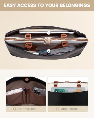LOVEVOOK Laptop Bag for Women, 15.6 Inch Work Tote Bag, Large Purse Professional Computer Bag, Stylish Business Office Briefcase,Black-White-Brown 5