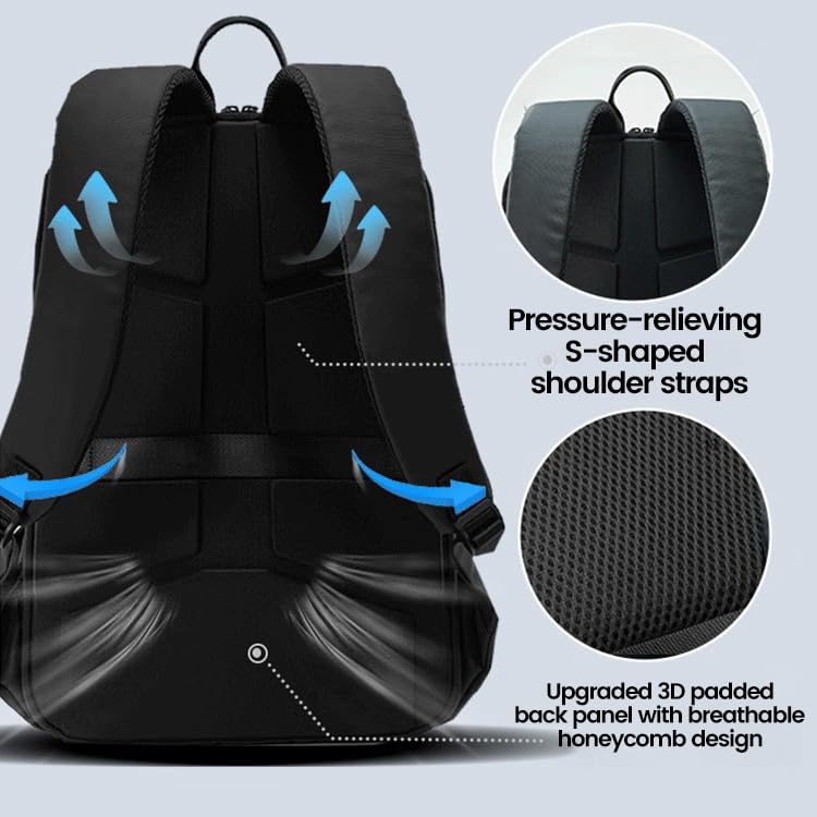 • 【Pressure-relief System‌】 ‌S-curve shoulder straps‌ + ‌3D padded back panel‌ reduce 35% shoulder strain. ‌5-layer back cushion‌: Lycra fabric + eco-EVA foam + shock-absorbing sponge + reinforced Oxford base + silk-lined smooth interior.