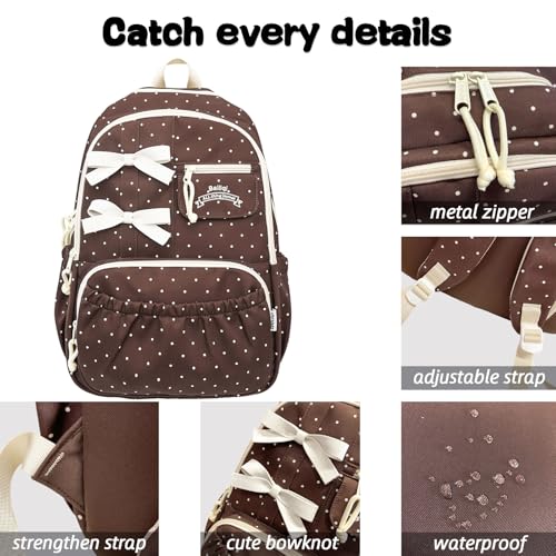 Teclado Kawaii Backpack with Cute Accessories Nylon Casual Bookbags with Pendants Lightweight Laptop Bag Travel Daypacks (Brown) 5