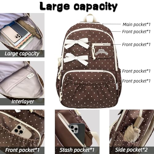 Teclado Kawaii Backpack with Cute Accessories Nylon Casual Bookbags with Pendants Lightweight Laptop Bag Travel Daypacks (Brown) 6