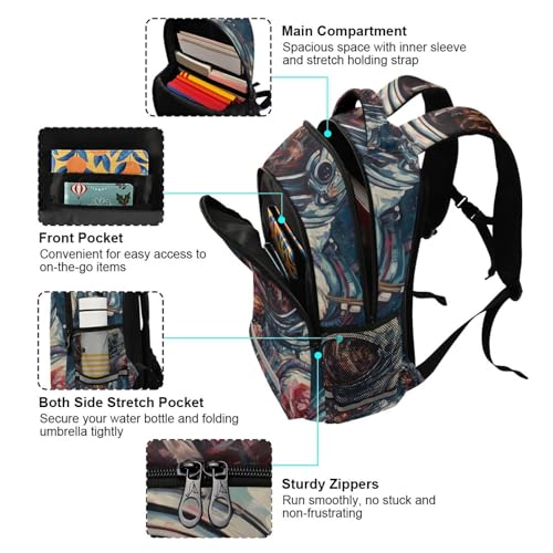 AIXIWAWA Retro Astronaut Backpack for Travel Hiking, Unisex Laptop Backpack Daypacks with Padded Straps and Back 11.6×4.9×16.7 IN 3
