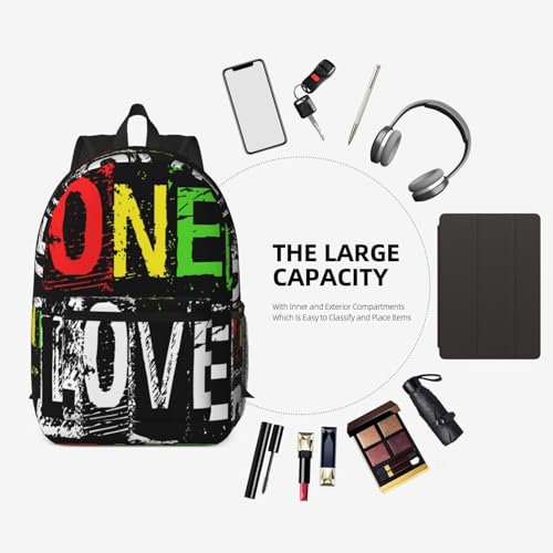 HOT ! One Loves Jamaican Rasta Reggae 17 Inch Backpacks Multipurpose Laptop Backpack Double Shoulder Bag for Men Women Gifts