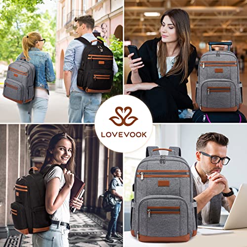 HOT ! LOVEVOOK Laptop Backpack Vintage Travel Backpack with USB Charging Port Business Computer Backpack for Women & Men Water Resistant College Bag Fits 17.3 Inch Laptop and Notebook - Black