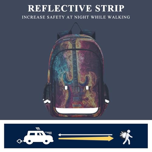 Guitar Fire Blue Backpack Travel Laptop Daypack Shoulder Bag Book Bag Daypack with Reflective Strip 12.9 ×17.7 In 5