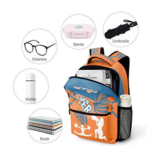 Personalized Cheerleader Backpacks Name Waterproof Laptop Bags Cheer Pom Orange Blue 3