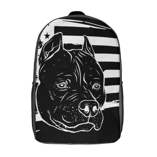 17 Inch Business Work Workout Backpack Pitbull Black And White American Flag Travel Hiking Carry On Bookbag Backpack Casual Laptop Bag 7
