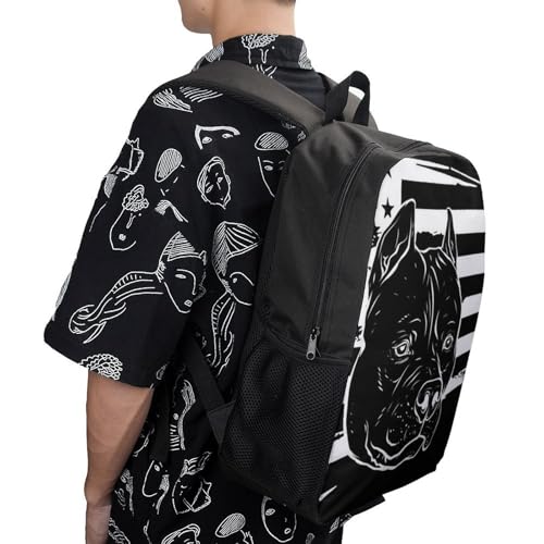 17 Inch Business Work Workout Backpack Pitbull Black And White American Flag Travel Hiking Carry On Bookbag Backpack Casual Laptop Bag 5