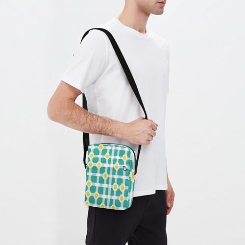 messenger bag crossbody cross body bag Croos Body Purses Adjustable Strap for Shopping Shopping- Squares Turquoise White Sunflower 1