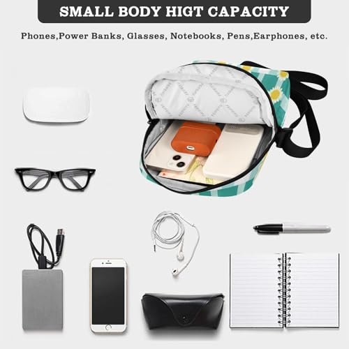 messenger bag crossbody cross body bag Croos Body Purses Adjustable Strap for Shopping Shopping- Squares Turquoise White Sunflower 5