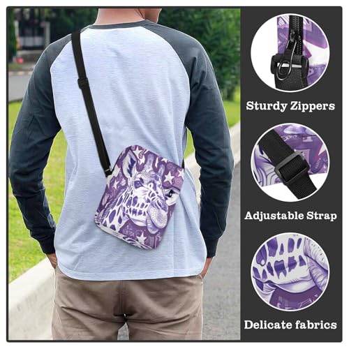 HOT ! messenger bag crossbody Small Crossbody Bag Women Shoulder Handbags For Women Adjustable Strap for School School- Giraffe Purple Face