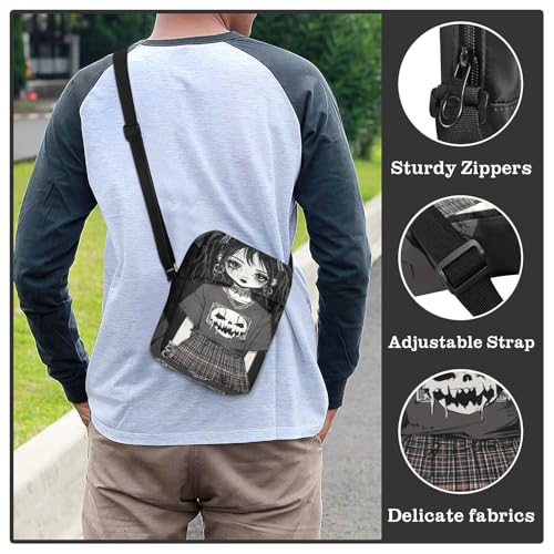 messenger bag cute Crossbody Bags For Women Small Purse Bag Adjustable Strap for Shopping Shopping- Gothic Anime Girl Black 5