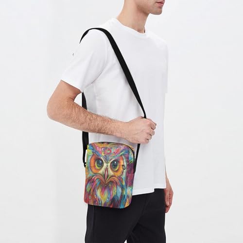 messenger bag for men mens crossbody bag small Purse For Teens Adjustable Strap for Outdoor Daily Outdoor Daily- Psychedelic Art Owl 2