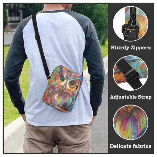 messenger bag for men mens crossbody bag small Purse For Teens Adjustable Strap for Outdoor Daily Outdoor Daily- Psychedelic Art Owl 1