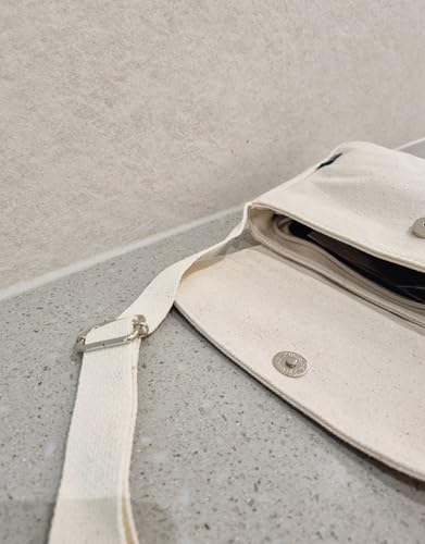 More information about Korean Canvas Messenger Bag, Black Ivory, Adjustable Crossbody Strap, Student Shoulder Bag, Snap Button Zipper Closure