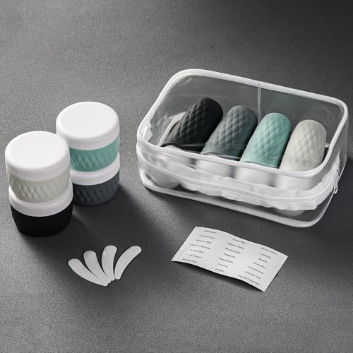 • 【Secure Sealing Design】 Leak proof travel bottle feature press-down locking nozzles; jars have twist-lock lids. 100% leak-proof, and provide protection for your luggage and clothing without causing confusion.