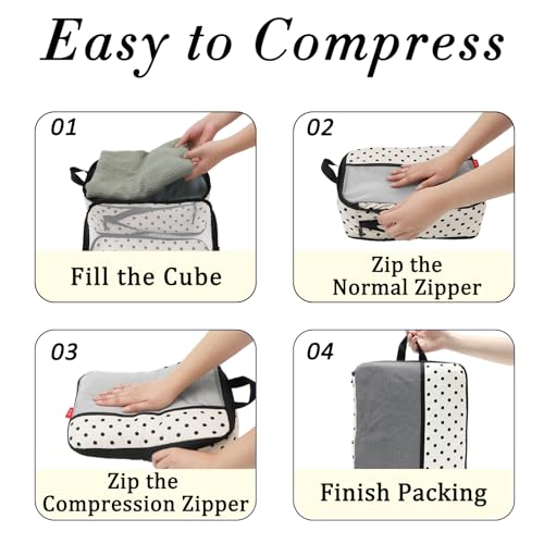 HOT ! U+U 8 Set Compression Packing Cubes - Ultralight Travel Organizers with Laundry Bag and Cosmetic Bag, Space-Saving Suitcase Organizer for Travel, Business Trip and Family Vacation (Polka Dot)