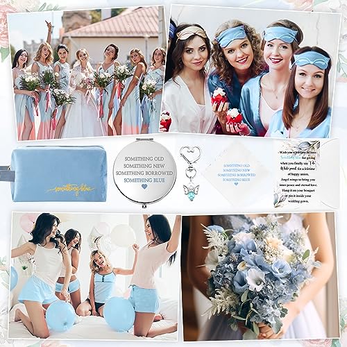 • Bride Wedding Gift Set: package includes a something blue makeup bag, a something blue wedding handkerchief, a something blue metal bouquet charm keychain, a diamond compact mirror, a greenery wish card and an envelope; The combination kit is adequate and varied, being an ideal gift for a bride