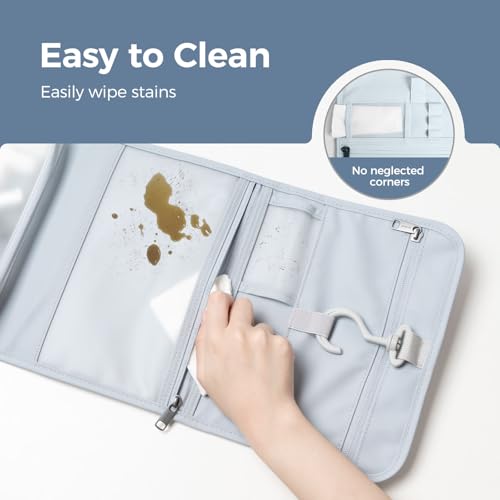 pack all Hanging Travel Toiletry Bag, Foldable Cosmetic Bag with Multiple Compartments, Water-Resistant Makeup Bag for Toiletries, Accessories (Light Blue) 7