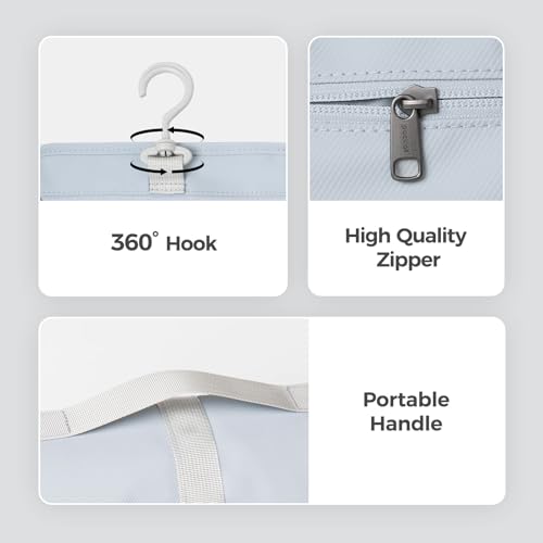 • Sturdy Hook Design: Equipped with a 360° swivel hook, this toiletry bag can be hung anywhere for easy access and to save valuable counter space