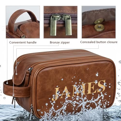 Gowelly Personalized Toiletry Bag for Men - Custom Travel Large Capacity Water-Resistant Leather Toiletry Bag - Personalized Gifts for Men Dad Husband Boyfriend - Groomsman Gifts for Wedding 7