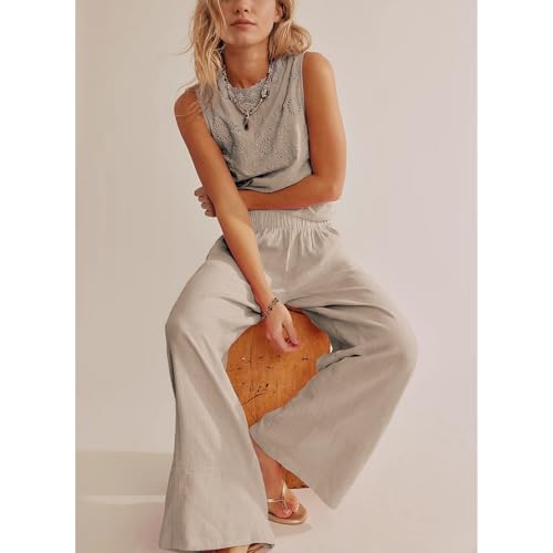 HOT ! Duyang Womens Cotton Linen Pants High Waist Casual Wide Leg Pant Summer Vacation Outfits Flowy Beach Trousers with Pockets