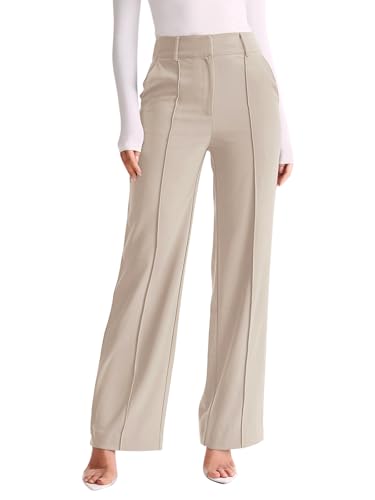 NIMIN Trousers Pants for Women Wide Leg Dressy Work Pants High Waisted Business Casual Outfits 2025 Summer Fashion Office Formal Slacks with Pockets Apricot 5