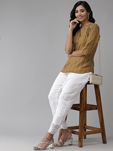 Ada Indian Hand Embroidered Chikankari White Kota Palazzo Pant Culottes for Women & Girls A711135 6