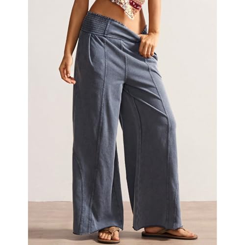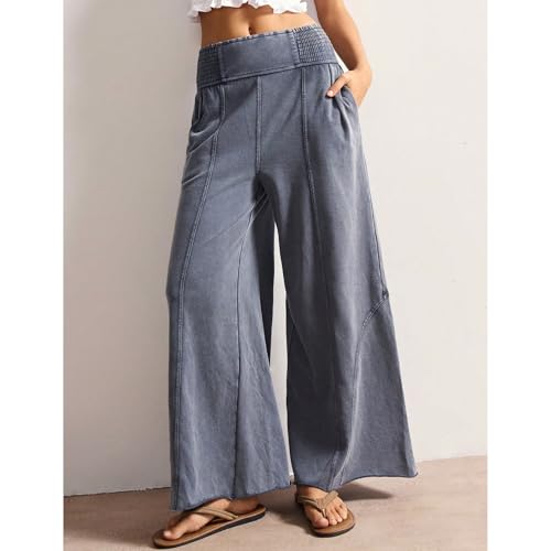 More information about Womens Wide Leg Washed Pants Palazzo Casual Sweatpants Elastic Waisted Lounge Baggy Trousers with Pockets