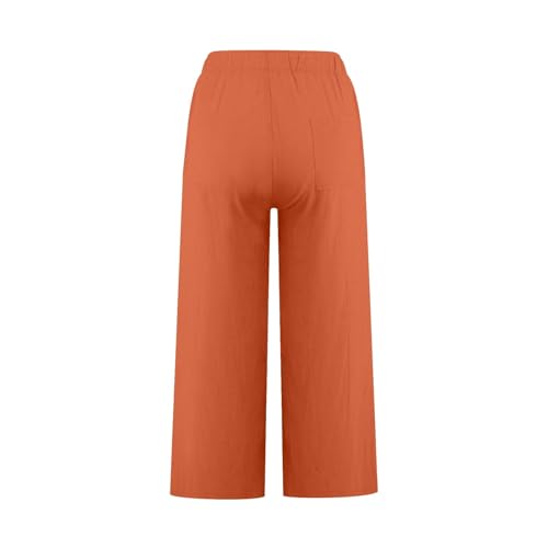 HOT ! Cotton Linen Pants for Women 2025 Wide Leg Cropped Lounge Trousers Drawstring Elastic Waist Summer Capri Pant