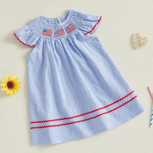 • Design:Girls 4th of July dress,toddler girl 4th of july outfit,baby girl summer dresses,patriotic baby girl outfit,short sleeve,ruffle casual dresses for girls,fly sleeves,round neck,plaid print,star and stripes print,USA flag/national flag/bow flag/american flag embroidery,smocked dresses,a-line dresses design,red white and blue classic color,kids little girls casual dresses,toddler girl 4th of july dress,independence day dresses for girls,simple and casual 2pcs fourth of July baby girl outfit