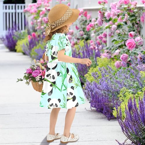 GAIREG Children Girl Dress with Cute Pandas Playfully Botanic Design for Summer and Spring Playwear, 2T 7