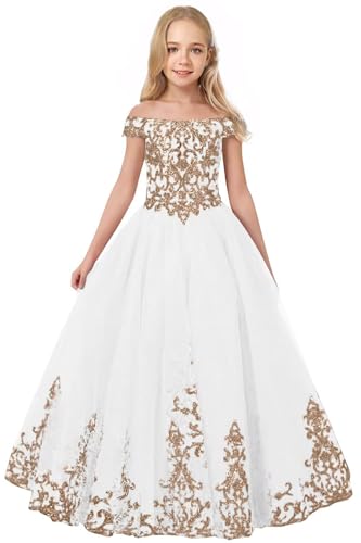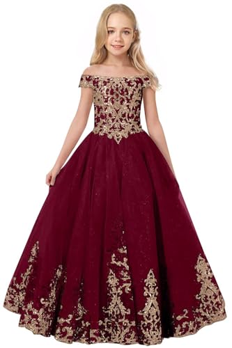 Off Shoulder Flower Girl Dress Lace Appliques Pageant Dresses Tulle First Communion Kids Birthday Party Ball Gown 6