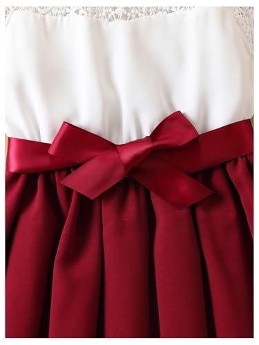 WDIRARA Girl's Contrast Lace Ruffle Mock Neck Cap Sleeve Dress High Waist A Line Belted Flared Dresses 6
