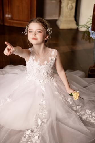 First Communion Dresses for Girls Tulle Flower Girl Dress 3D Floral Appliques Ball Gowns for Wedding Birthday 3