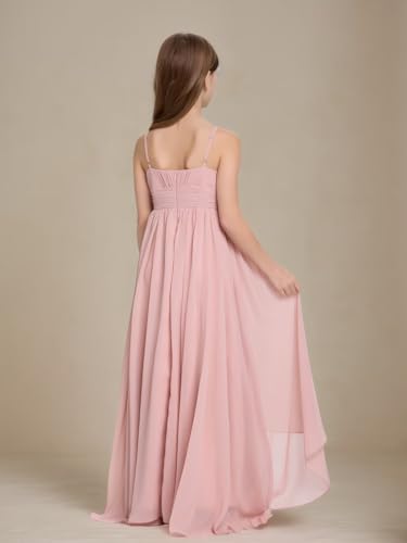 Junior Bridesmaid Dresses High Low Chiffon Pleated Flower Girl Dress Spaghetti Straps Wedding Party Pageant Gown 6