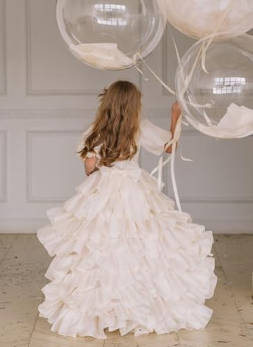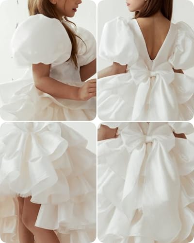 Puff Sleeve Flower Girl Dress with Bow Knot High Low Tiered Tulle First Communion Dresses Organza Ball Gown for Girls 6