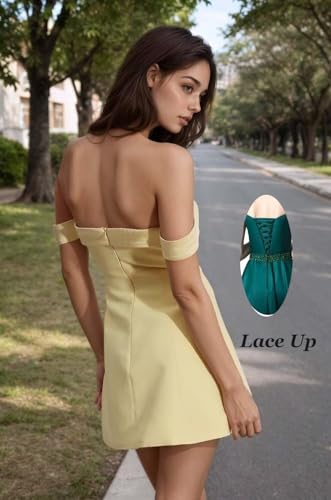 Off Shoulder Short Satin Homecoming Dress for Teens, A Line Sweetheart Neck Cocktail Dress Mini Party Evening Gown 5