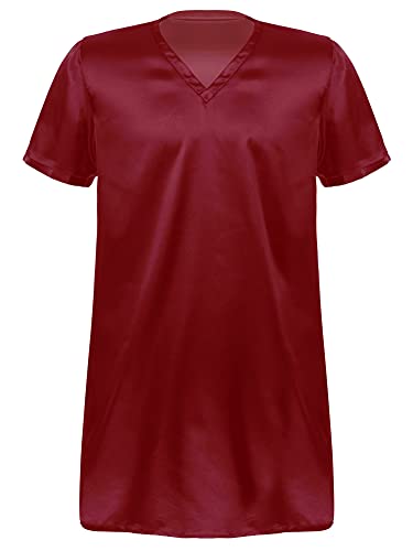 CHICTRY Men's Nightshirt Satin Nightwear Comfy V Neck Short Sleeve Soft Loose Pajama Sleep Shirt 6