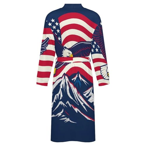 HOT ! Ea-gles Flying Over U.S. Flag Soft Robe Long Sleeve Bathrobes V Neck Sleepwear Spa Robes with Belt Men Woman