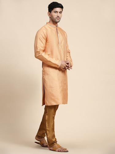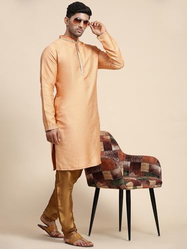 • HIGH QUALITY MATERIAL: Lightweight and breathable material gives this kurta pajama set soft, comfortable feel. Made from the finest handloom jacquardart silk fabric. Designs feature modern and innovative details that appeal to everyone.