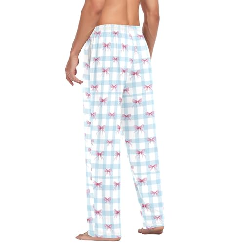 Men's Pink Ribbons Bows Pajama Pants with Pockets - Straight Fit Cotton Sleep Bottoms for Lounge & Nightwear#563 1