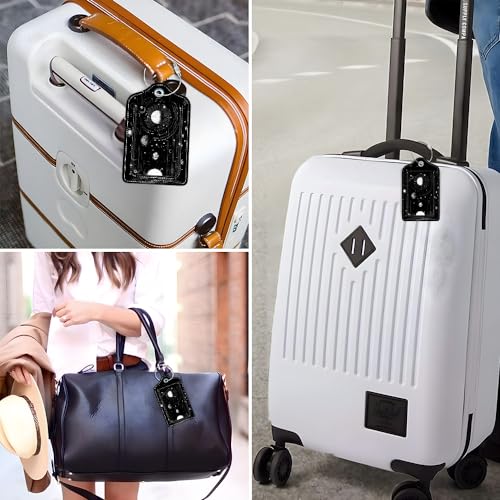 2 Pcs Luggage Tag for Suitcase, Sun Black Planet Unique Leather Suitcase Tags with Full Privacy Cover Stainless Steel Loop for Women Men Travel Baggage Bag Backpack 4
