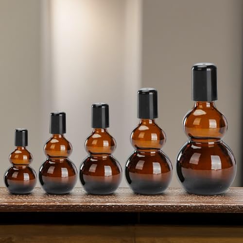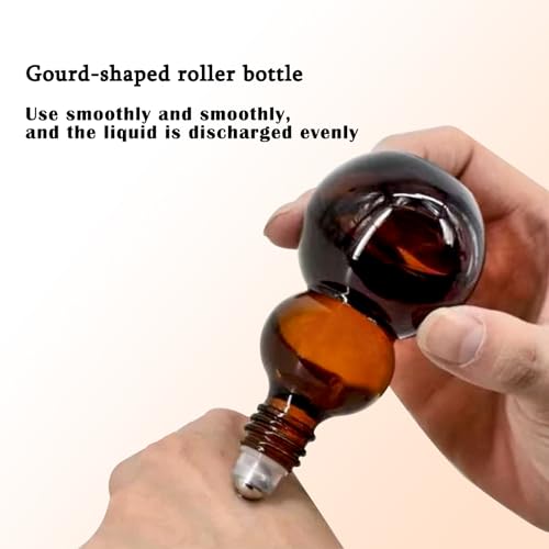 Essential Oil Roller Bottles, 10ml Amber Gourd Shaped Glass Roller Bottles with Stainless Steel Roller Ball, for Travel,Perfume (Amber-Black Cap, 10ML) 5