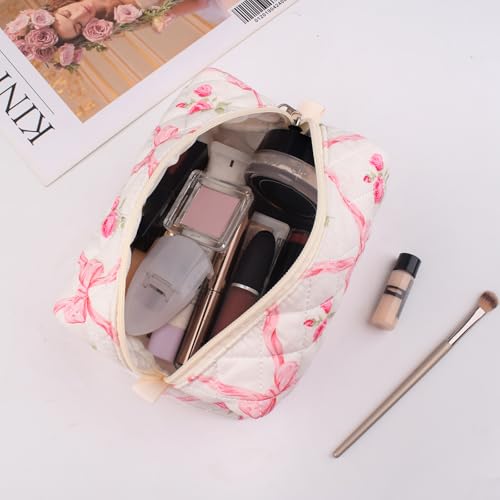 Quilted Makeup Bag,Small Travel Floral Cosmetic Bag Cute Pouch,Cotton Makeup Brushes Storage Bag for Women 2