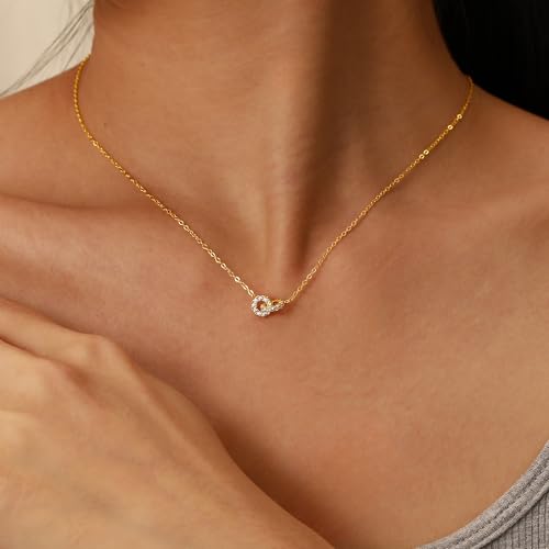 925 Sterling Silver Dainty Interlocking Circles Necklaces for Women 14K Gold Plated Double Hoop CZ Pendant Necklace Lobster Buckle to Daughter Mother Friendship Wedding Christmas Jewelry Gift for Her 6